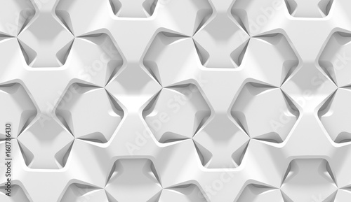 © Formfrom.design, Fototapeta premium Biały abstrakcjonistyczny heksagonalny geometryczny wzór. Styl papieru origami. 3D renderingu bezszwowa tekstura.