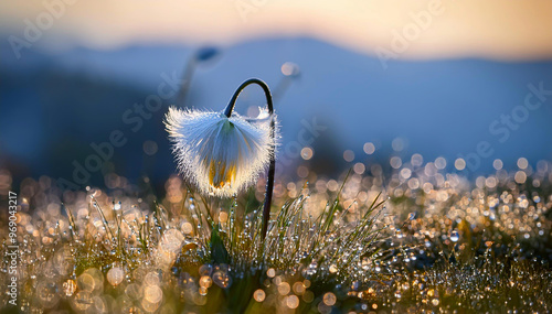 © Iwona, Obraz premium Biały kwiat, trawa w rosie