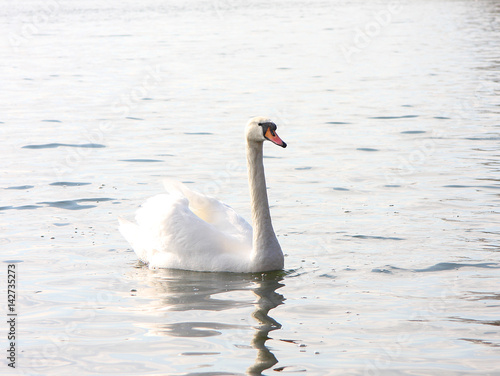 © vchphoto, Obraz premium Biały łabędź pływa po jeziorze