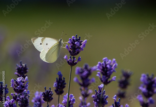 © kubikactive, Naklejka premium Biały motyl na kwiatach lawendy