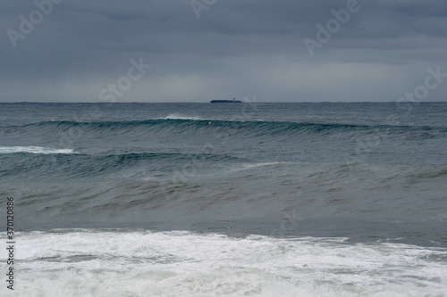 Fototapeta premium Bib waves rolling into the beach, massive surf day