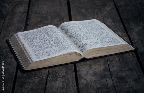 Fototapeta premium Bible on a wooden desk.