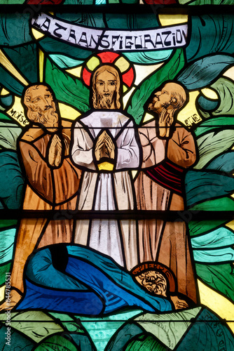 © Joan, Obraz premium Bible : Transfiguration of Jesus. Bible : Transfiguration de Jésus. Annecy - France