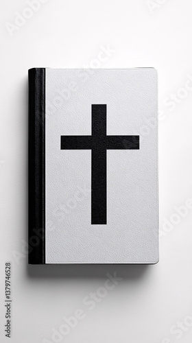 © VT Studio, Obraz premium Bible with Black Cross on White Background Religious Book Still Life