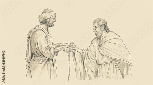 Fototapeta premium Biblical Illustration: Naaman's Healing, Washing in Jordan River, Healed of Leprosy, Elisha's Instructions, Beige Background, Copyspace