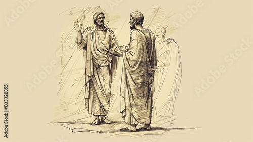 Obraz premium Biblical Illustration of 1 Corinthians 1: Greeting and Thanksgiving, Call for...