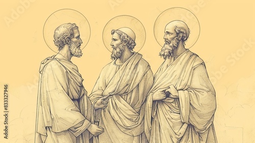 © T Studio, Naklejka premium Biblical Illustration of 1 Corinthians 4: Servants and Stewards, Call to Humility, Apostles' Suffering on Beige Background with Copyspace
