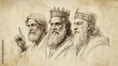 © T Studio, Fototapeta premium Biblical Illustration of Israel Demands a King: Elders Express Desire for King Like Other Nations, Reject Samuel’s Leadership, Beige Background, Faith, Leadership, Old Testament