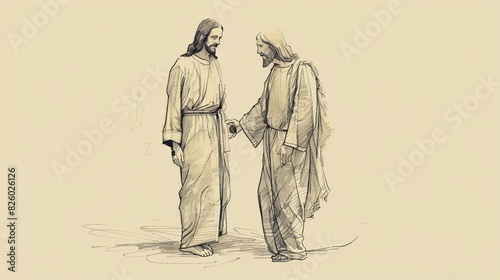 Obraz premium Biblical Illustration of Jesus Assisting in Difficult Decisions, Emphasizing...