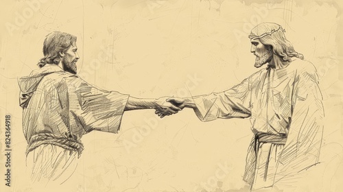 Fototapeta premium Biblical Illustration of Jesus' Forgiveness on the Cross, Ideal for article