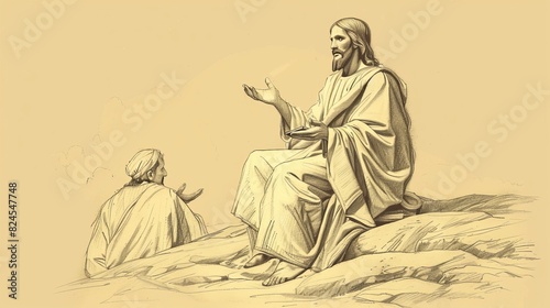 Obraz premium Biblical Illustration of Jesus' Teaching on the Mount of Olives, Ideal for...