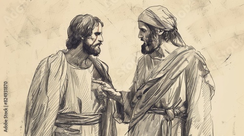 Fototapeta premium Biblical Illustration of Jesus' Teaching to the Rich Young Ruler, Ideal for...