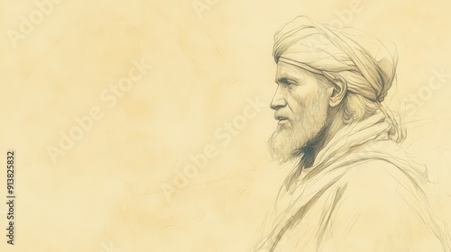 © T Studio, Fototapeta premium Biblical Illustration of Joshua's Farewell Address: Joshua standing before the people, his face showing wisdom and years of leadership, Beige Background
