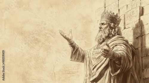 © T Studio, Fototapeta premium Biblical Illustration of King Ahaz Ascending to the Throne of Judah in 2 Chronicles, Turning Away from the Lord and Engaging in Idol Worship, Beige Background