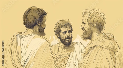 © T Studio, Fototapeta premium Biblical Illustration of Peter Confessing Jesus as Christ, Son of Living God, Near Caesarea Philippi, Beige Background, Copyspace