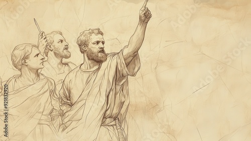 Fototapeta premium Biblical Illustration of 1 Samuel: Saul Defeats the Ammonites, Shows Mercy,...