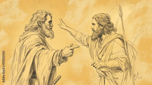 © T Studio, Fototapeta premium Biblical Illustration of the Lord Revealing to David That the People of Keilah Would Surrender Him to Saul, Bible Wall Art with Beige Background