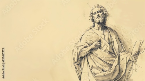 Fototapeta premium Biblical Illustration: Warning Against Altering Prophecy, Jesus Promises Return, Beige Background, Copyspace