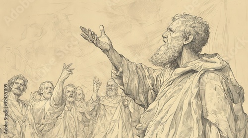 Fototapeta premium Biblical Wall Art, Leviticus, The Death of Nadab and Abihu, Moses reminding of priestly laws, Bible Illustration with beige background