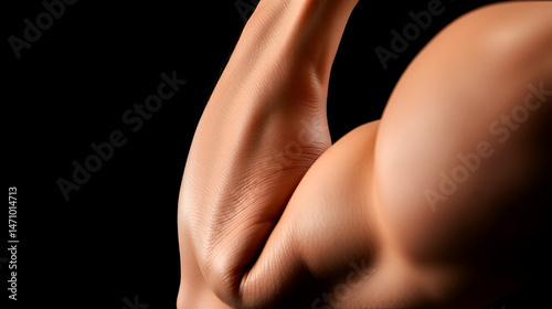 Naklejka premium Bicep short head detail during preacher curl, classic studio lighting, pure...