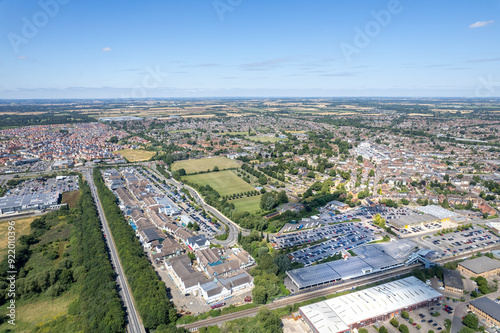 © gormakuma, Obraz premium Bicester Village and Bicester town center, amazing aerial view in summer daytime, uk