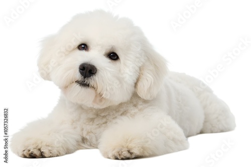 © KhWutthiphong, Obraz premium Bichon Frise Puppy Lying on White Background