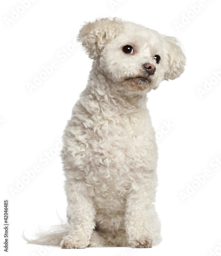 Obraz premium Bichon Frise, 7 years old, sitting against white background