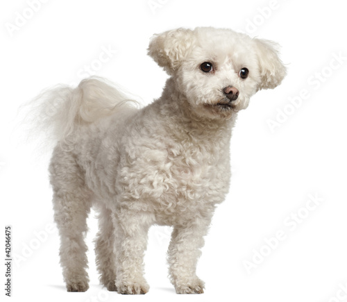 Obraz premium Bichon Frise, 7 years old, standing against white background
