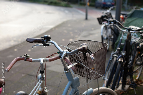 Obraz premium Bicycle after rain. Parked bicycle.