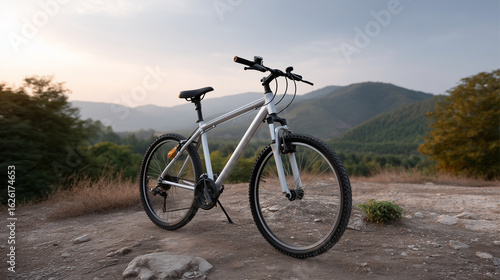 © Denis Yevtekhov, Obraz premium Bicycle Against a Stunning Sunset Landscape