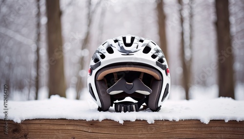 Fototapeta premium Bicycle helmet woods, winter background