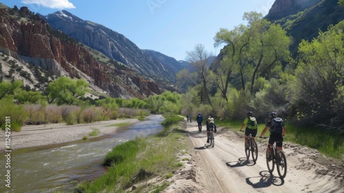 © tanibond, Obraz premium Bicycle hiking travel in the mountains illustration generated by ai