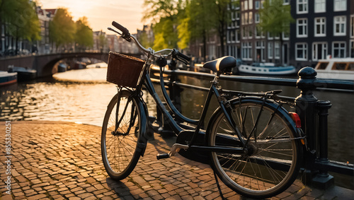 © tanya78, Obraz premium Bicycle in Amsterdam cityscape