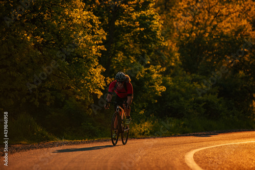 © bernardbodo, Fototapeta premium Bicycle rider pedaling on a country road