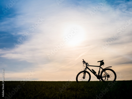 Obraz premium Bicycle silhouettes on the dark background of sunsets