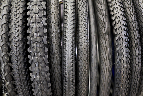 © Sergey Ryzhov, Fototapeta premium Bicycle tires an assortment of store