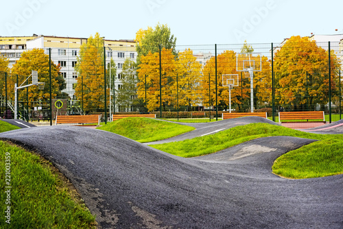 © sapsan777, Naklejka premium Bicycle track road. Located in city playground