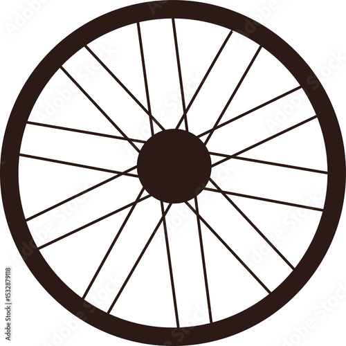 Fototapeta premium Bicycle wheel is being shown in flat design, with dark rim, spokes and hub, transparent background
