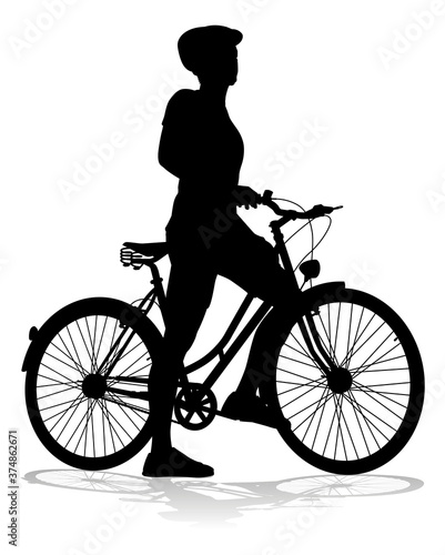 © Christos Georghiou, Fototapeta premium Bicyclist riding their bike and wearing a safety helmet in silhouette