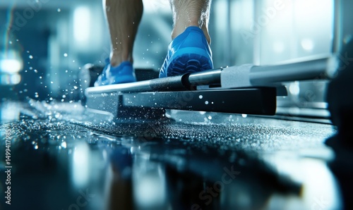 Naklejka premium Bieganie na bieżni, krople potu, intensywny trening