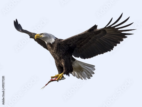 Fototapeta premium Bielik przynoszący ryby do gniazda