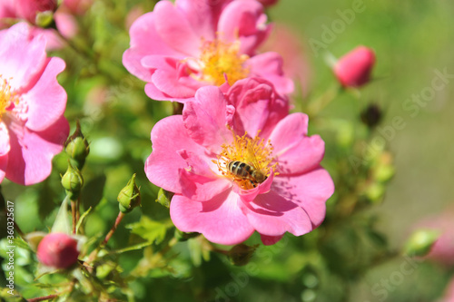 Fototapeta premium Bienenweide Rose rosa, Bienenfreundliche Beetrose