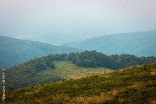 Fototapeta premium Bieszczady meadows covered with fog