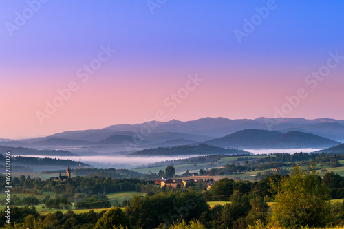 Fototapeta premium Bieszczady Widok na Lutowiska, w oddali Bieszczady wysokie