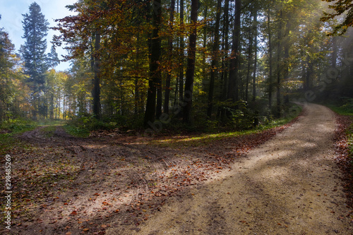 Obraz premium Bifurcation of a footpath in the autumn forrest
