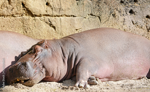© kalichka, Fototapeta premium Big and funny sleeping hippo