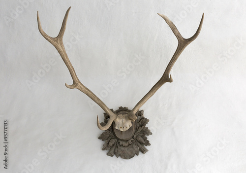 © Panama, Fototapeta premium Big antlers on a white wall