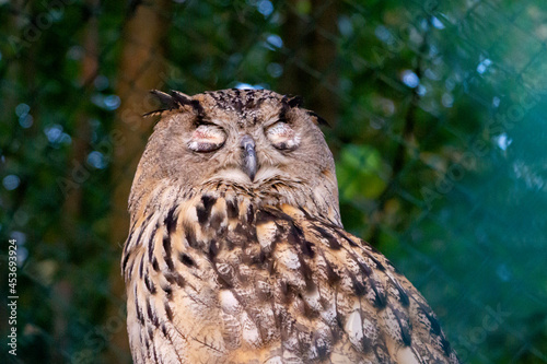 © leanna, Fototapeta premium Big beautiful owl on a branch close-up