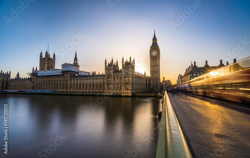 © ex_flow, Naklejka premium Big Ben and the houses of Parliament in London at dusk