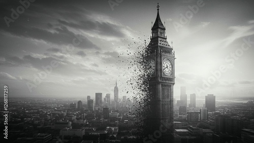 Fototapeta premium Big Ben Disintegrating in Modern Cityscape